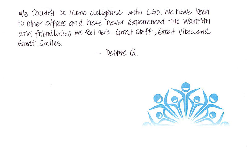 If you'd like to share some kind words and smiles, please ask our front desk staff for a comment card at your next appointment. We'd love to hear about your experience!